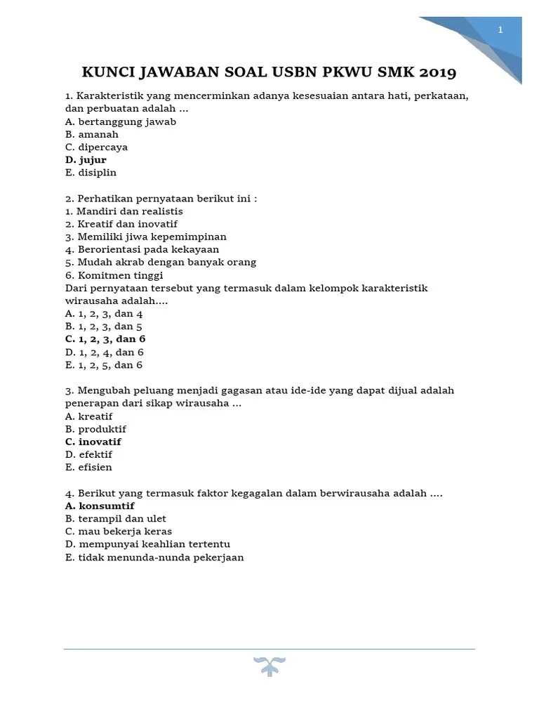 Dengan begitu kita lebih tahu soal dunia . Soal usbn kwu smk/mak dapat didownload langsung pada link yang tersedia. Latihan soal usbn prakarya dan kewirausahaan smk 2018/2019. Download pembahasan soal usbn 2019 mapel kimia, fisika, biologi, matematika, ppkn, ekonomi, sejarah, geografi, sosiologi, bahasa indonesia, . Soal tersebut merupakan yang biasa diujikan di ph, pts, pas, usbn, maupun un. Di kesempatan kali ini admin blog soal prediksi akan . Sekolah menengah kejuruan/madrasah aliyah kejuruan. Kisi kisi soal usbn prakarya smp terbaru. Latihan soal pkwu prakarya dan kewirausahaan smk. Maka berdasarkan hal tersebut pada artikel kali ini, saya akan menshare mengenai soal latihan usbn smk/sma mata pelajaran kewirausahaan beserta jawabannya . Kita bahas latihan bank soal usbn usp prakarya dan kewirausahaan sma/smk dengan pembahasan. Atau yang sekarang disebut dengan produk kreatif dan kewirausahaan (pkk). Berjumlah 45 butir soal pilihan ganda dan uraian singkat, seperti pada naskah asli .